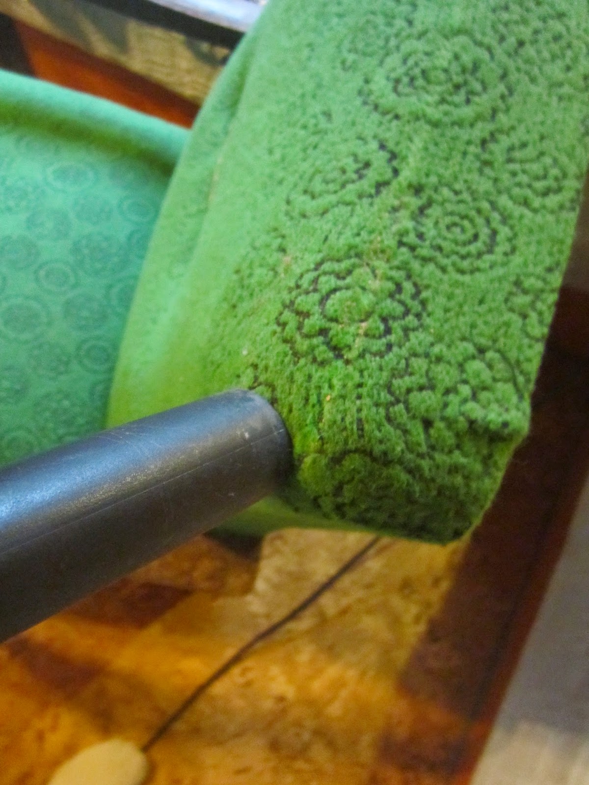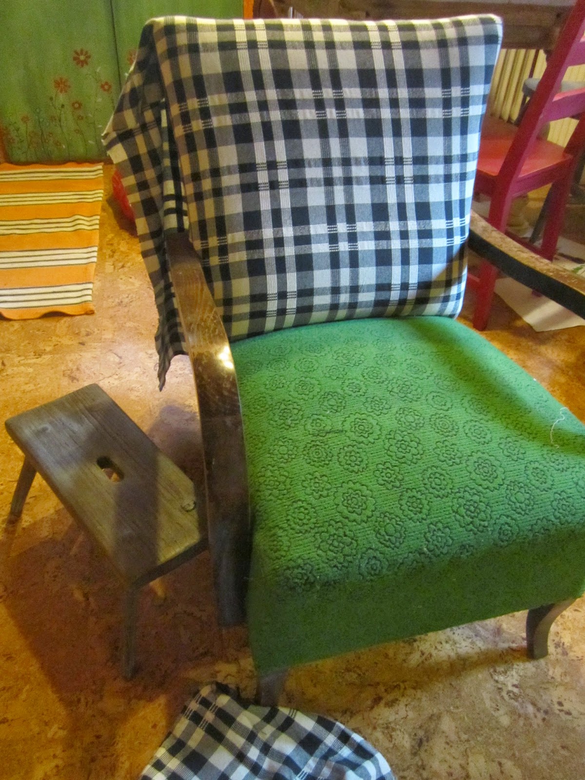 Iszonyú kopott színű, de tökéletes “állagú” volt rajta az eredeti kárpit és a “szalma” tömés is rendben volt, így eszemben sem volt szétszedni.