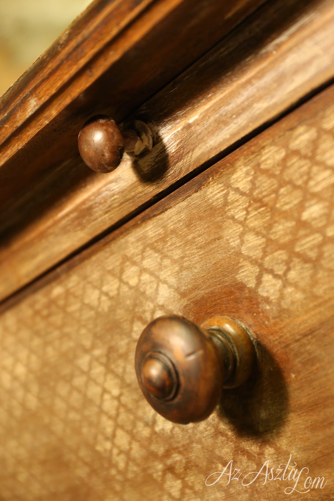 Dió színű vastaglazúrral dörzsöltem be a, “lehántolt” felületet