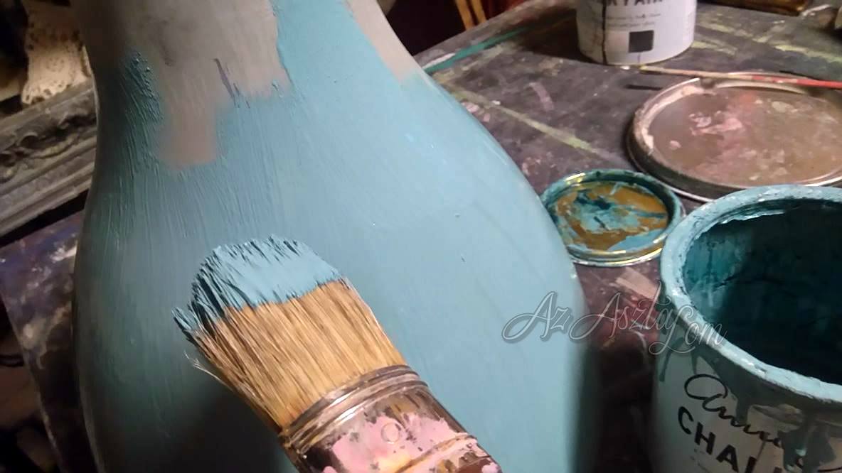 Először is Annie Sloan Chalk Paint Provance színnel eltüntettem a virágokat és ezt a színt akartam látni a repedésekben.