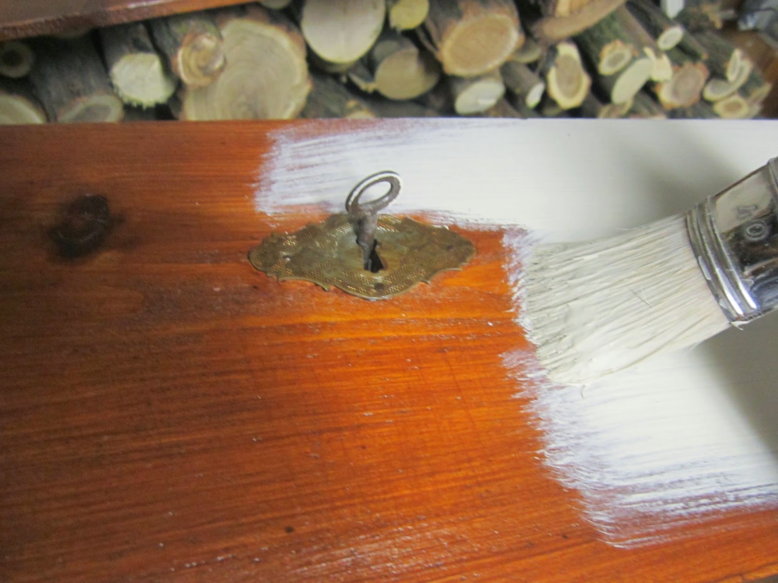 tetejét és a fiók elejét is lazúroztam, mivel ezt simára gyalulta az előző tulajdonos és a visszakoptatásnál szerettem volna a sötét színt látni, nem zavart az átlátszó tapasz, mert még 2 réteg festék ment a tetejére