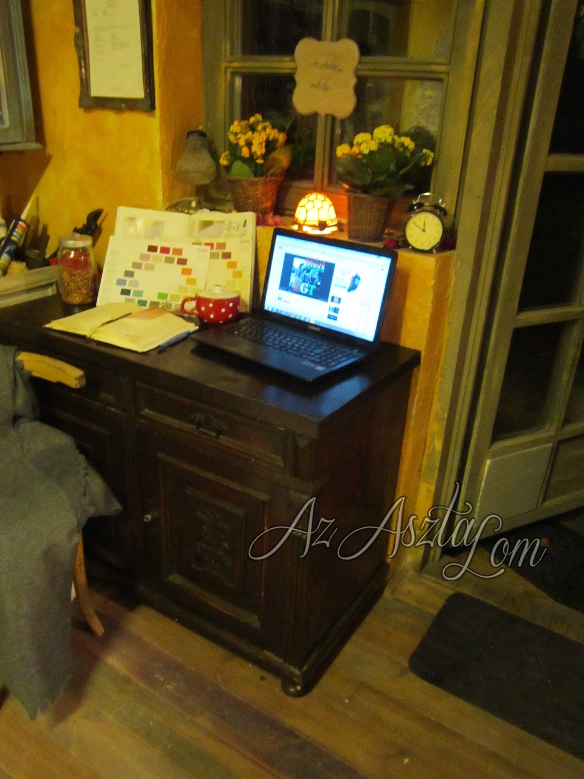 kivéve az asztal lapjára, amit selyemfényű lakkal 3x kentem át.