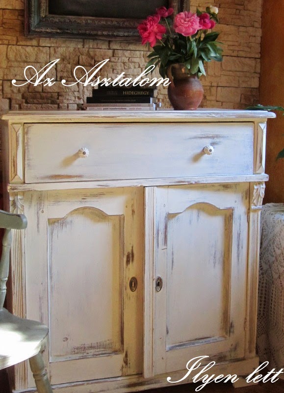Rendeltek tőlem egy ugyan olyan komódot mint amit világoskékben készítettem. Csak itt a kérés az volt, hogy koptatott fehér legyen.