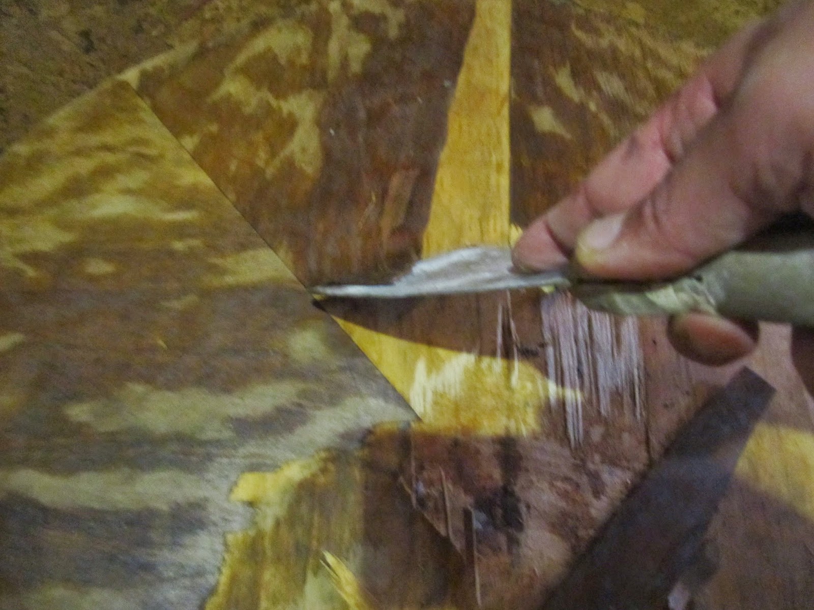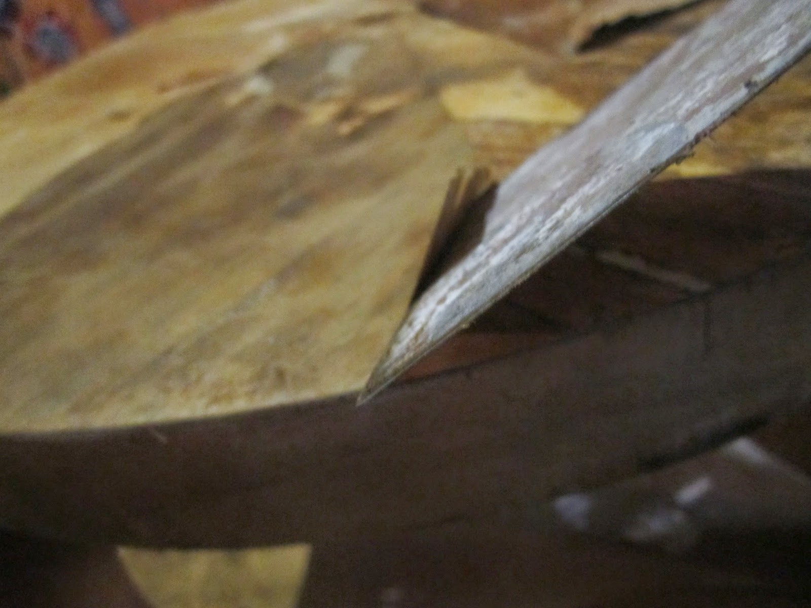 amivel szépen le lehetett hántani a közepén teljesen felpúposodott felső részt, ahol szerintem évekig egy túlöntözött óriási szobafikusz állhatott
