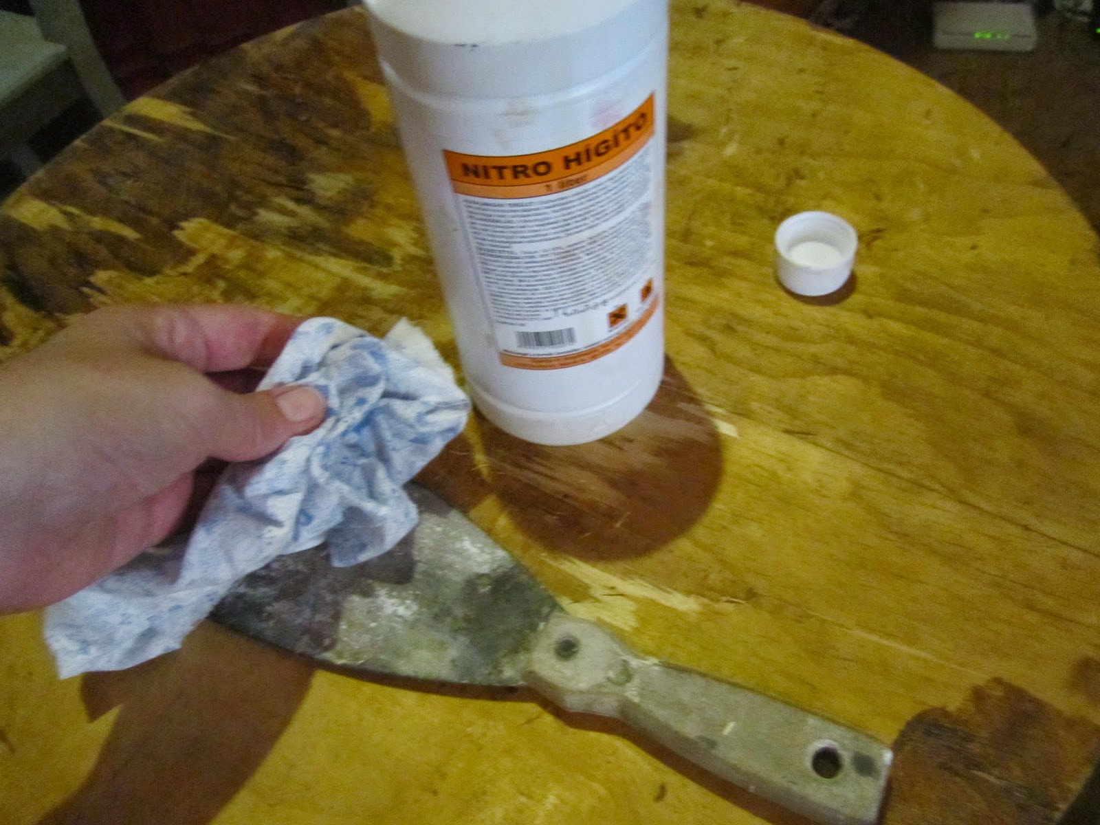 ( először is érdemes meggyőződni róla, milyen vastag az asztallap, hogy ha “megpucoljuk” előbukkan az igazi fa vagy rossz esetben már belátunk az alsó polcra)