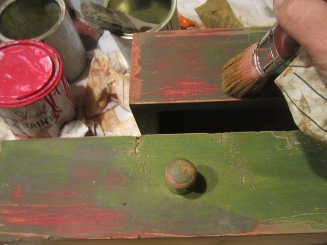 Felhasznált festékek Chalk Paint™ alap: Emperor’s Silk, Arles, majd rá Olive és clear wax, dark wax