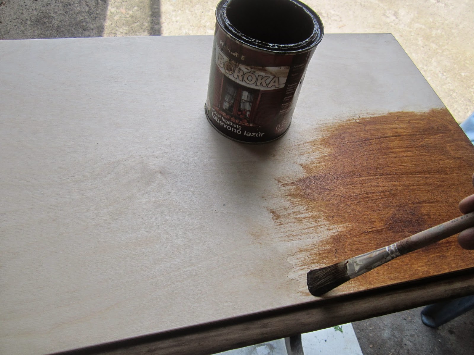 Az egészet lekentem egy réteg vizes bázisú bútor lakkal, hogy elkerüljem a foltosodást.