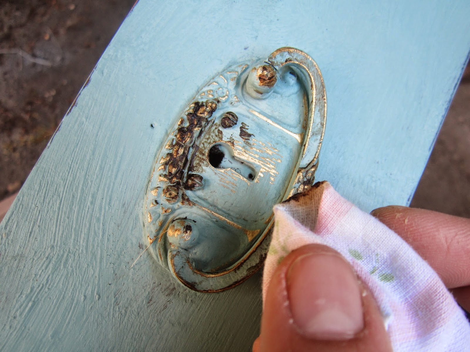 A megcsiszolt fogantyúra ronggyal kentem fel a Dark waxot