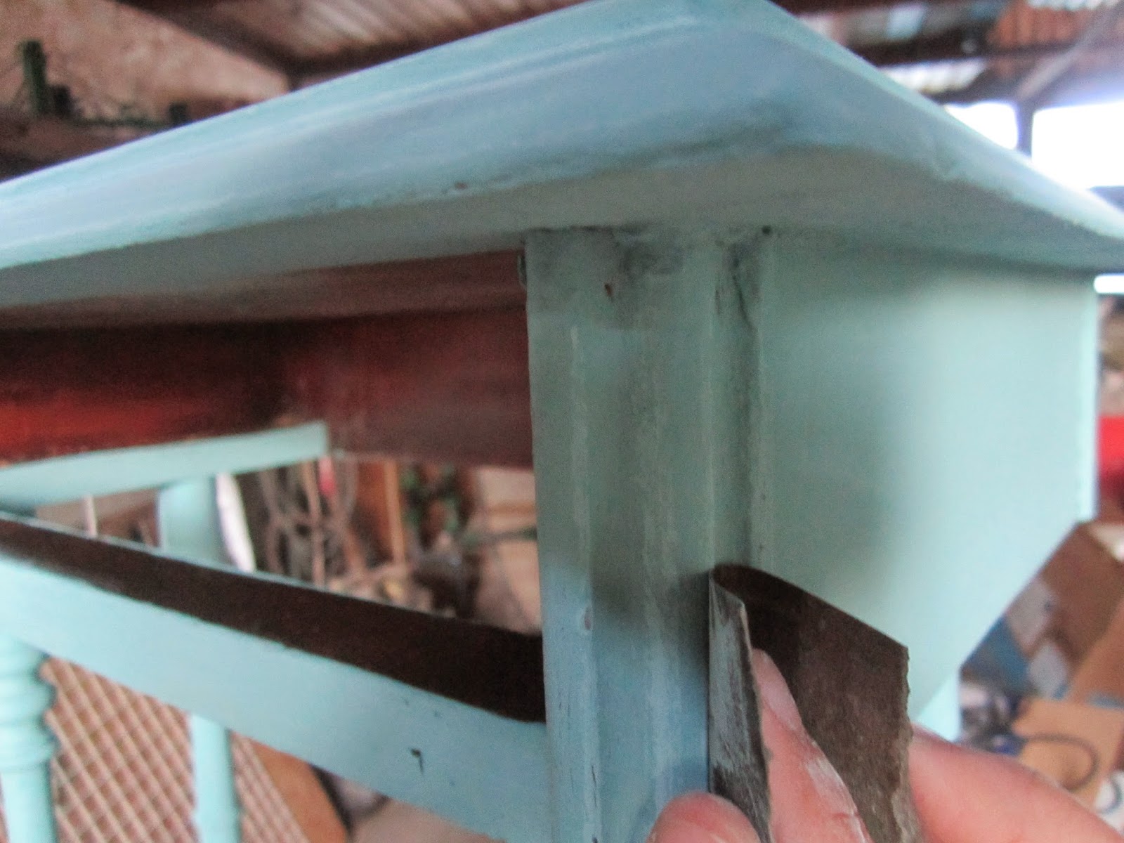 a régi ragasztó elengedett a csonttá száradt fa szinte lötyögött és csak 4 pici szög tartotta