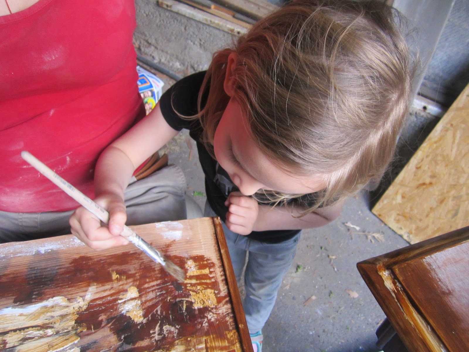 Belülről is kitisztítottam és a vastag lazúrral minden porcikáját befestettem (itt található az írás) amit csak nagyon vékonyan kentem be, hogy olvasható maradjon a mester neve és a dátum 🙂